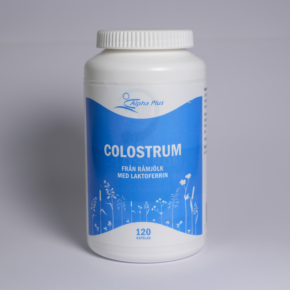 Alpha Plus Colostrum är ett kosttillskott i kapselform som innehåller 100 % rent colostrum-pulver från den första mjölkningen efter kalvning. Colostrum är naturligt rikt på immunglobuliner och laktoferrin samt innehåller minst 60 % protein. Produkten är framtagen för att stödja immunförsvaret och matsmältningssystemet. Varje förpackning innehåller 120 kapslar.