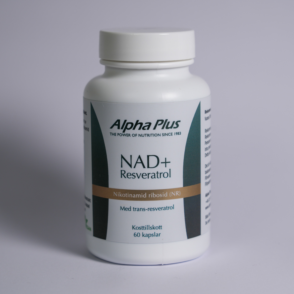 Alpha Plus NAD+ Resveratrol är ett veganskt kosttillskott i vegetabiliska kapslar som kombinerar nikotinamid ribosid (en form av vitamin B3) och trans‑resveratrol från parkslide. Nikotinamid ribosid fungerar som en föregångare till koenzymet NAD+, vilket stödjer cellernas energiproduktion, DNA‑reparation och metabolism. Trans‑resveratrol verkar som antioxidant och skyddar cellerna mot oxidativ stress. Produkten levereras i en förpackning med 60 kapslar och är avsedd för dagligt bruk.