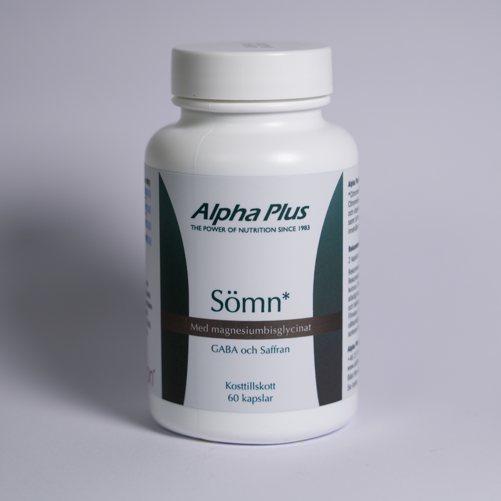 Alpha Plus Sömn är ett veganskt kosttillskott i vegetabiliska kapslar, noggrant sammansatt för att främja avslappning och stödja en sund sömncykel. Formulan kombinerar lättupptagligt magnesiumbisglycinat, lugnande GABA, citronmeliss, inositol, vitamin B6 och det patenterade affron®-saffransextraktet standardiserat till 3,5 % Lepticrosalides®. Produkten är framtagen för dagligt bruk med 60 kapslar per förpackning.