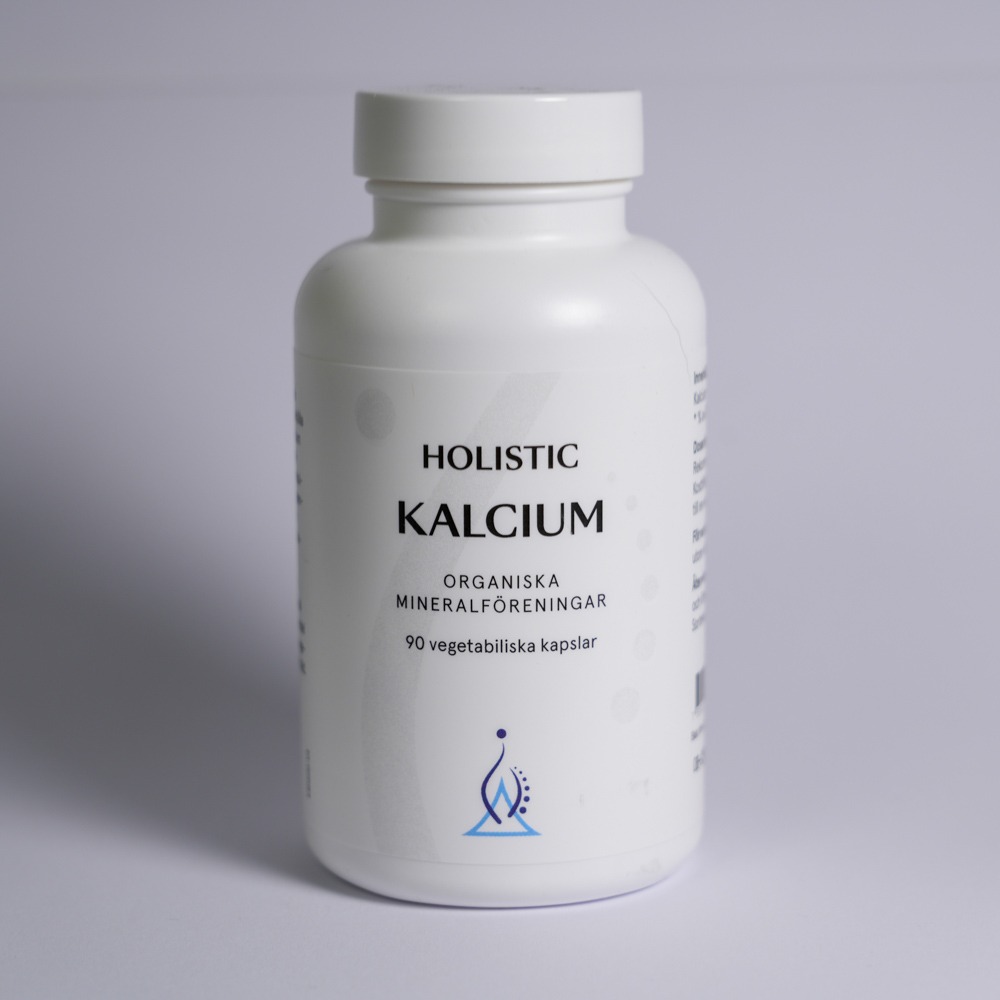 Holistic Kalcium 160 mg är ett kosttillskott i kapselform som innehåller kalcium från organiska mineralföreningar: kalciummalat, kalciumcitrat och kalciumlaktat. Kalcium är det mineral som förekommer mest i kroppen och är nödvändigt för att bibehålla normal benstomme och tänder. Det bidrar även till normal blodkoagulation, energiomsättning, muskelfunktion, neurotransmission samt matsmältningsenzymernas normala funktion.