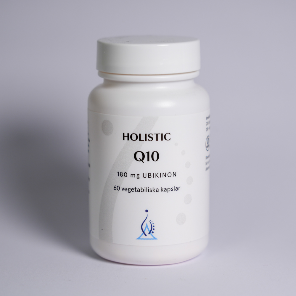 Holistic Q10 Högdoserad är ett kosttillskott i kapselform som innehåller 180 mg ubikinon (Coenzym Q10) per kapsel. Ubikinon är en syntetisk form av Q10 som motsvarar kroppens egna ämne och kan därmed tas upp av kroppen lättare. Förpackningen innehåller 60 kapslar.
